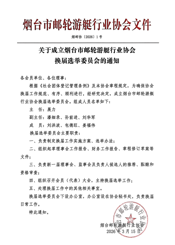 关于成立烟台市邮轮游艇行业协会换届选举委员会的通知